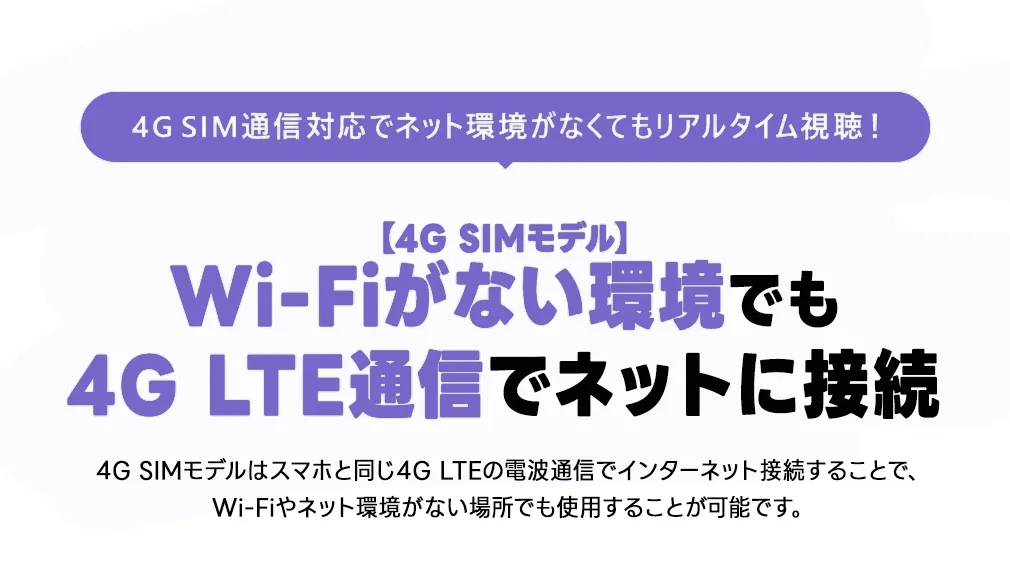 4G通信 | 搭載(NanoSIM) ※カメラ購入時に同時に契約していただくSIMカードのみ対応 |