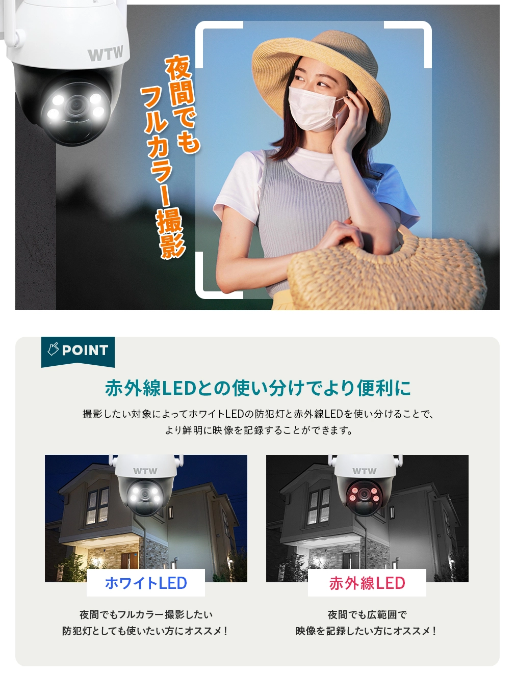 赤外線/ホワイトLED | デュアルLED(可視型850nm赤外線・ホワイトLED切替型) : 4灯 |