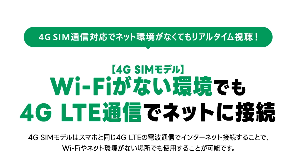 4G通信 | 搭載(NanoSIM) ※カメラ購入時に同時に契約していただくSIMカードのみ対応 |