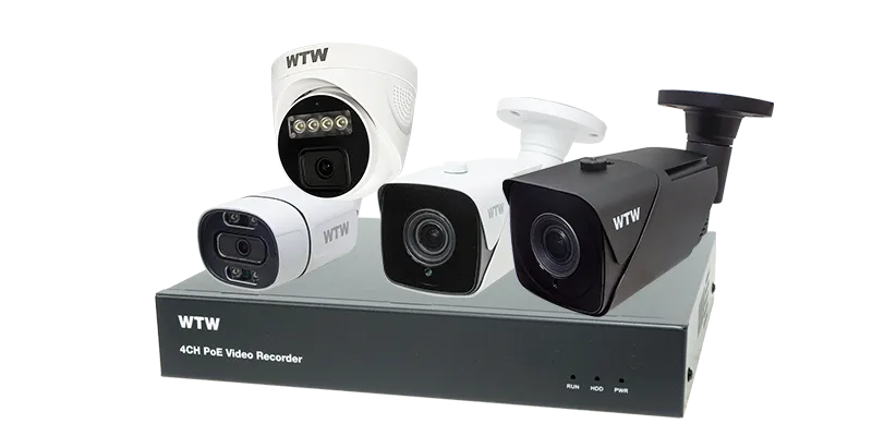 IPCシステムで最高解像度の4K800万画素の映像を録画可能なハイエンドモデル 4chセットです。業務用途に最適な小型で広角撮影が可能なカメラから広角から中望遠までを撮影できるバリフォーカルレンズ搭載カメラまで選べるセットです。