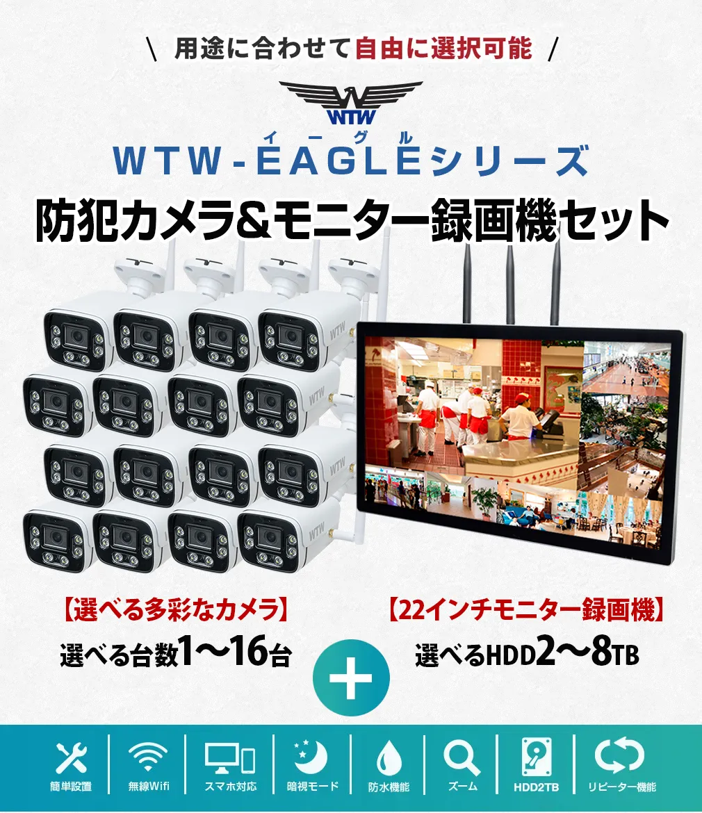WTW-EG2616WHAX-22- 22インチモニター一体型録画機・最大4K800万画素カメラ1〜16台選べるセット!
